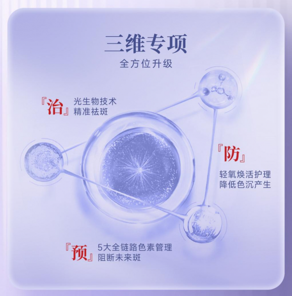 因此市面上不断涌现出各种美白祛斑的方式,但单一的色素治疗看似解决了色斑问题,背后却隐藏着一个威胁未来肤色的隐患——色素回流。这也是为什么部分求美者明明花了不少时间和金钱,可色斑却像打地鼠一样此起彼伏,肤色不白反黑。在色素管理领域,“祛”仅仅一个开始,“控”得好,才能真正实现“自然透亮健康白”。